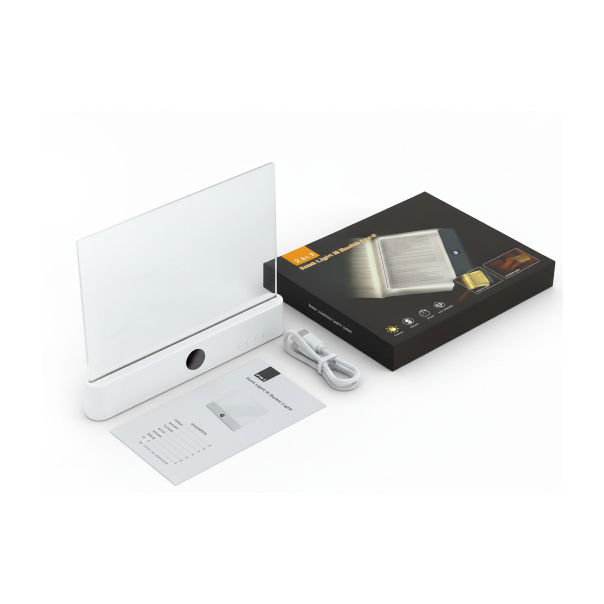 Een zachte, gelijkmatige gloed precies op de pagina - geen harde schittering, geen storende schaduwen. Geen gedoe meer met een nachtlamp of een clip die loslaat. Leg het op je pagina, stel de helderheid in met het scroll-wiel, en duik in je verhaal. Slank en licht, past het makkelijk in je tas of blijft het in je boek als bladwijzer.
